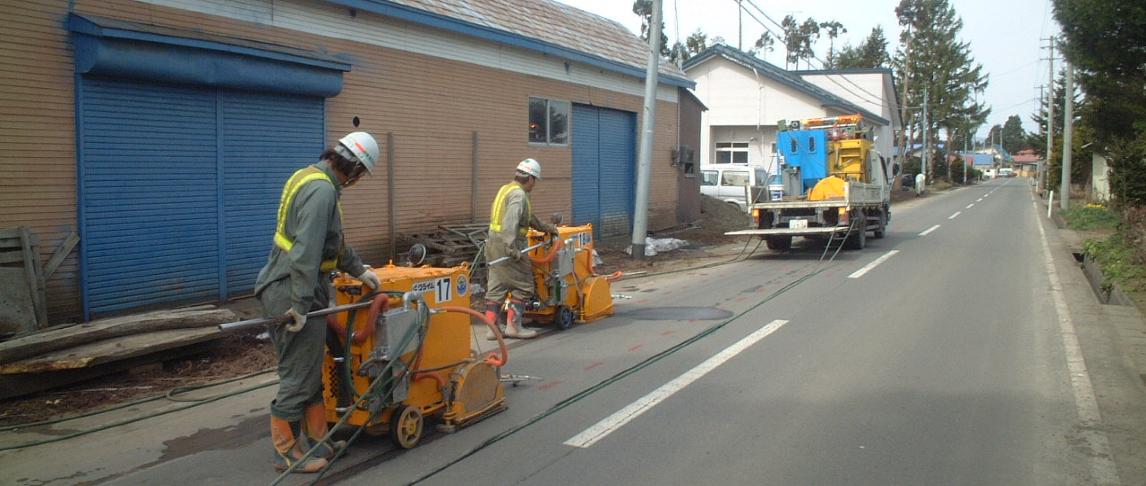 【工事部】 アスファルトおよびコンクリート切断工、ダイヤモンドチェンソー切断工、ウォルソー切断工、